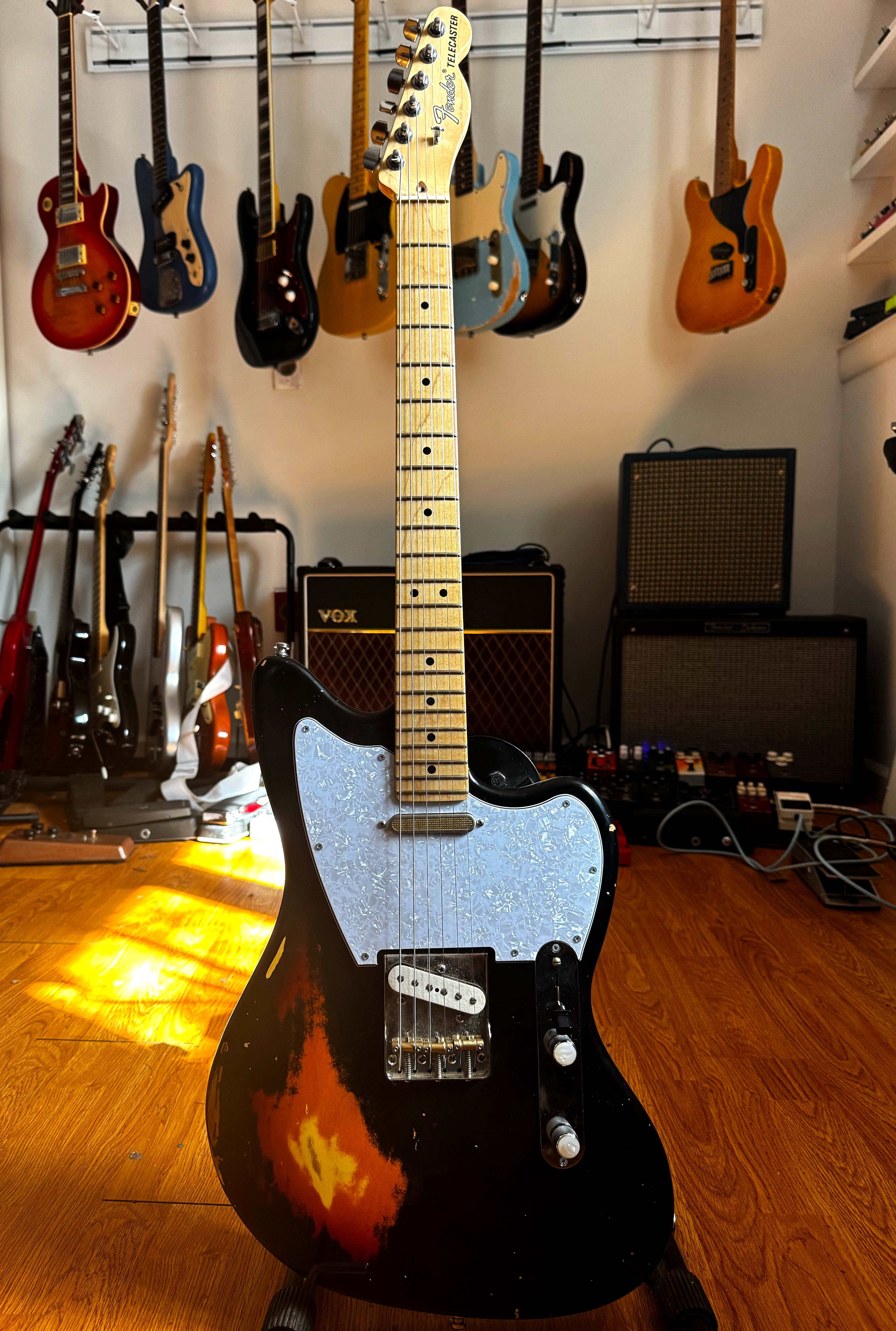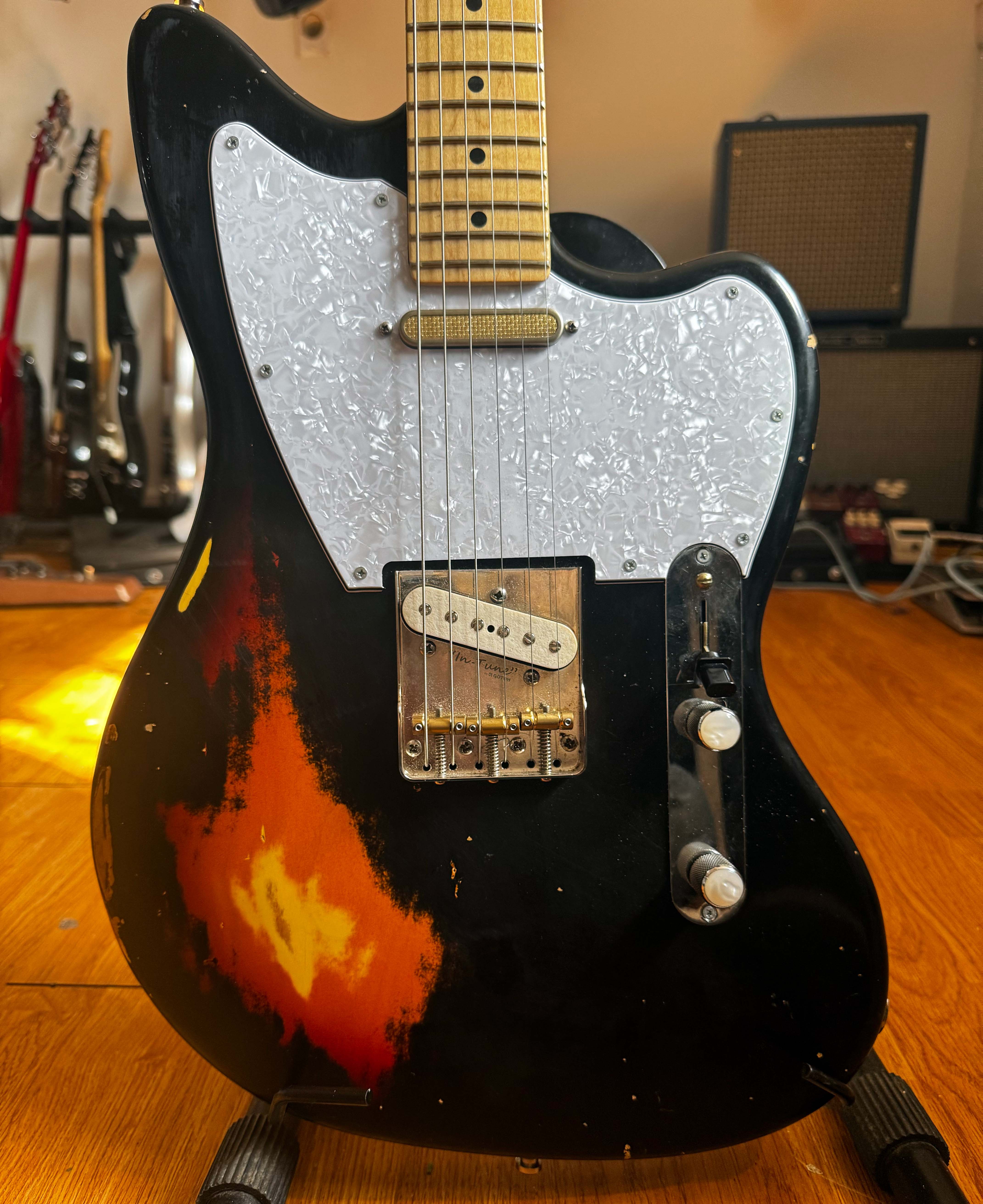 The Quint Guitars #03 Jazzcaster is a versatile guitar with a unique sound and design. The Jazzcaster was never a real model created by fender, rather it uses the shape of a Jazzmaster witht the pickup and neck layout of a telecaster.