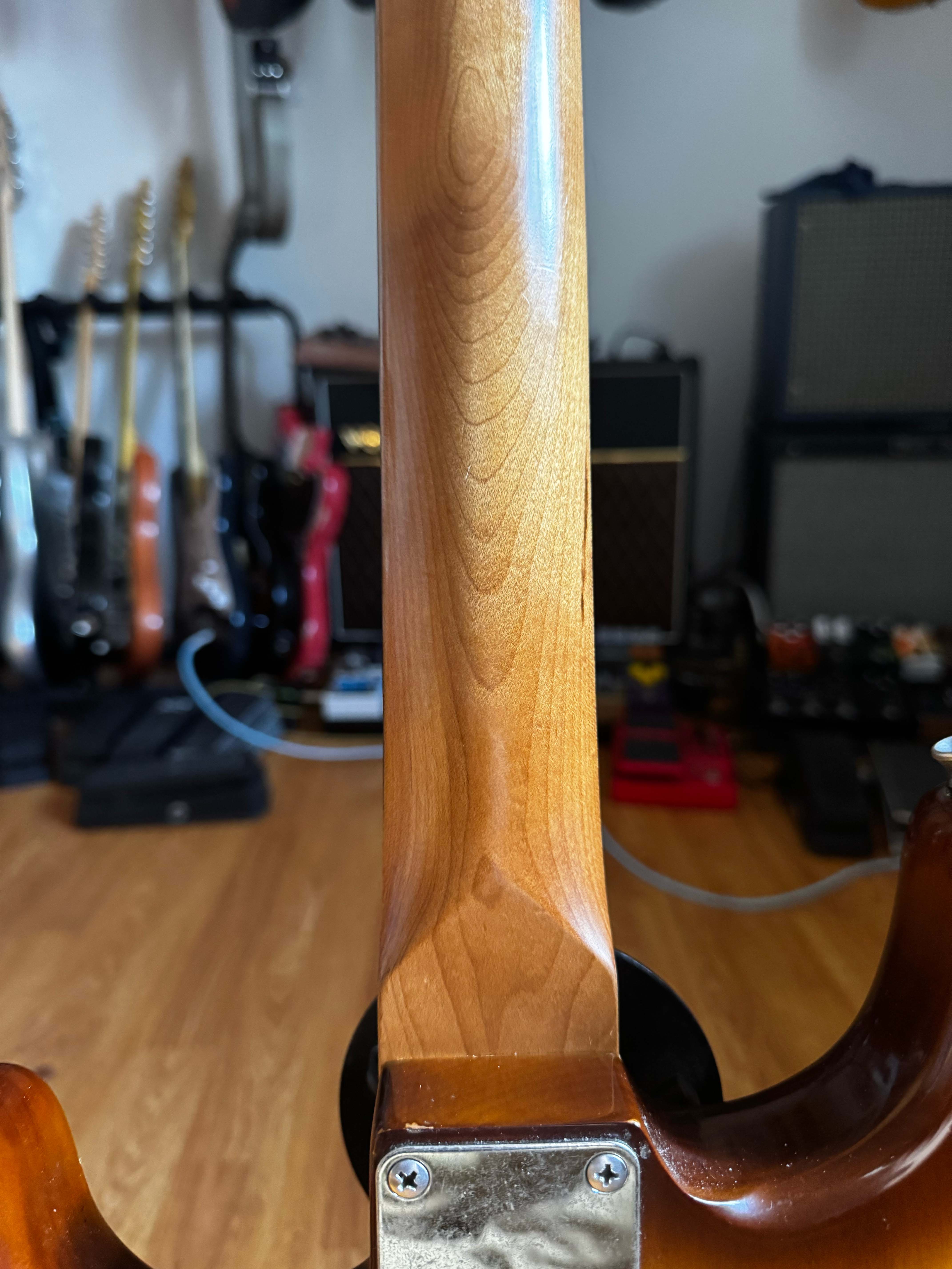 The guitar features a carefully selected lightweight ash body, finished in a rich whiskey-tinted nitrocellulose lacquer that allows the wood to breathe and resonate naturally. The one-piece roasted maple neck features a modern C profile for comfortable playability, while the 9.5" radius strikes the perfect balance between vintage and modern feel.