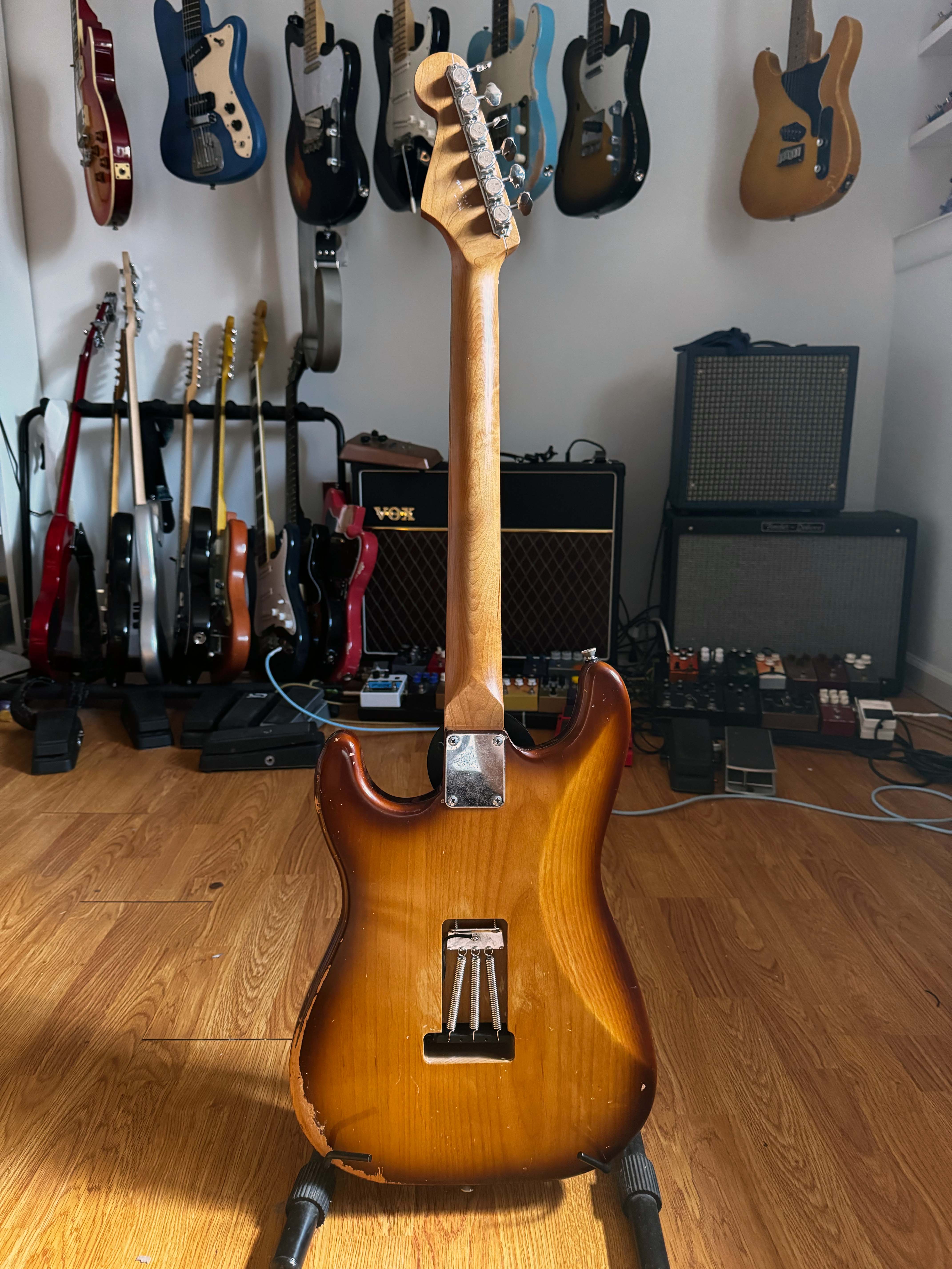 The guitar is equipped with a Fender Custom Shop ‘69 pickup set, offering authentic vintage-style tones: